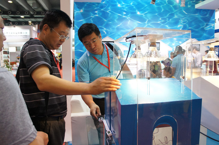 展覽期間,展臺內(nèi)最為火爆的場面在于客戶體驗區(qū),眾多的參觀觀眾在我司工作人員熱情接待下,逐一了解到我司最新環(huán)?萍夹彤a(chǎn)品——建筑節(jié)能隔熱涂料,并踴躍參與我司反射隔熱涂料效果展示測試。從現(xiàn)場測試情況來看,涂刷過我司隔熱涂料的樣板在與涂刷普通涂料的樣板對比中形成鮮明的反差,現(xiàn)場溫度測試儀顯示,涂刷過我司隔熱涂料展板與普通展板溫差達到15度,現(xiàn)場立竿見影的效果一度讓展臺人氣爆棚,并引起眾多客戶極濃興趣。