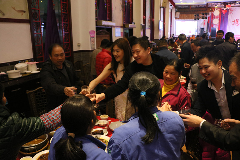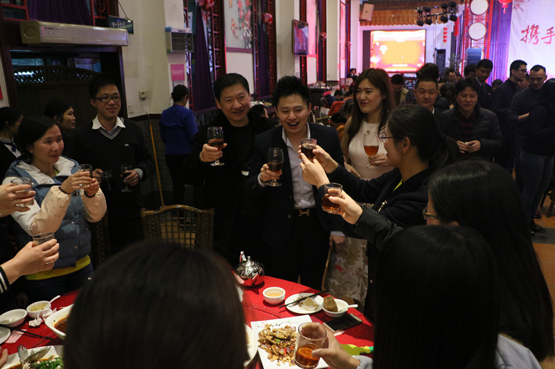 致辭完畢后,董事會(huì)向大家鞠躬致意,并端起酒杯,向大家致以新年的問候。并預(yù)祝大家在今晚的晚會(huì)中,收獲一個(gè)美好的夜晚。