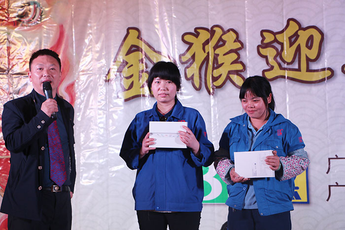 執(zhí)行董事連馨莉小姐、執(zhí)行董事連興隆先生、常務(wù)副總劉利明先生為員工頒發(fā)一等獎(jiǎng)