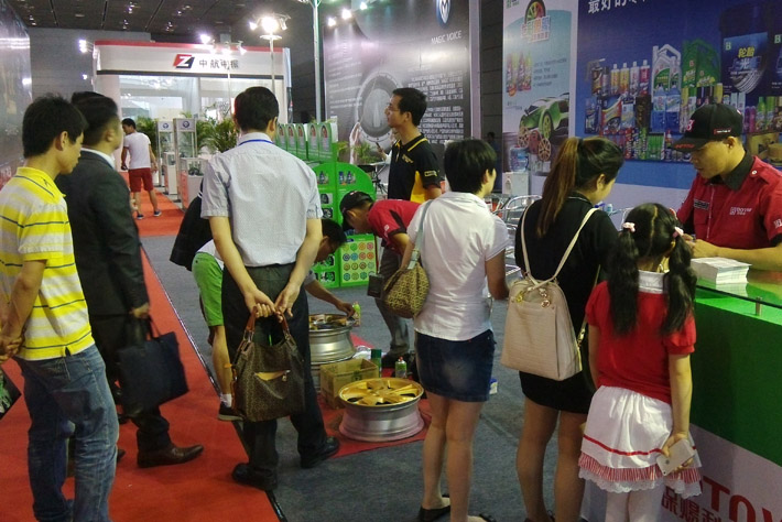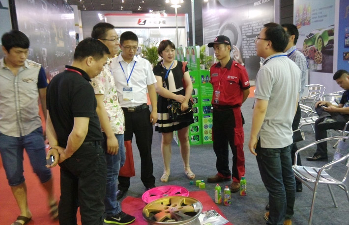 作為本屆展會的又一生力軍—車主,也在本屆展會上構成了不可或缺的角色。眾多車主在經我司工作人員介紹七彩噴膜產品功能及特性后,紛紛產生濃厚興趣,并請戰(zhàn)動手實操體驗,更有車主在展會期間動手實戰(zhàn)大眾甲殼蟲私家車—保賜利七彩噴膜輪轂改色。